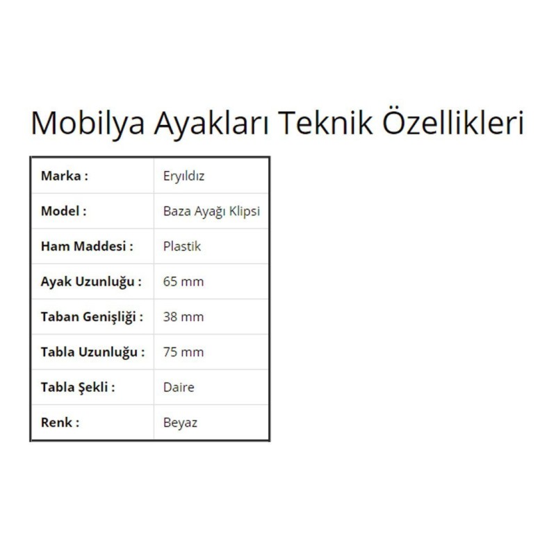 10\'lu Baza Ayağı Plastik Klipsi Eryıldız Hırdavat